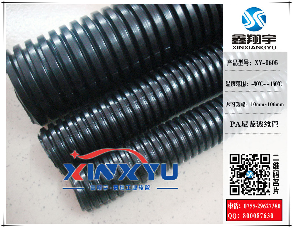 標準尼龍軟管內部和外表均為波浪型,顏色一般為黑色,也有其他顏色,有的還可以開口,穿線更為方便快捷。
